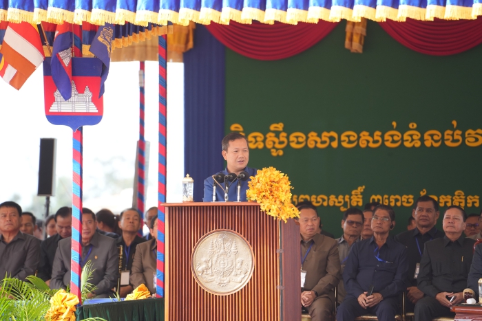 柬埔寨首相洪瑪奈向集團下屬企業國機重型裝備集團股份有限公司董事長韓曉軍交付截流石。柬埔寨能源與礦産部部長高拉達那、柬埔寨國公省省長密杜娜·布通、中國駐柬埔寨大使王文天、中國駐柬使館經商處參贊鍾潔等中柬政要,中柬主流媒體與社會各界人士等1800餘人,共同見證這一中柬務實合作、增進民生福祉項目建設取得突破性進展的曆史時刻。